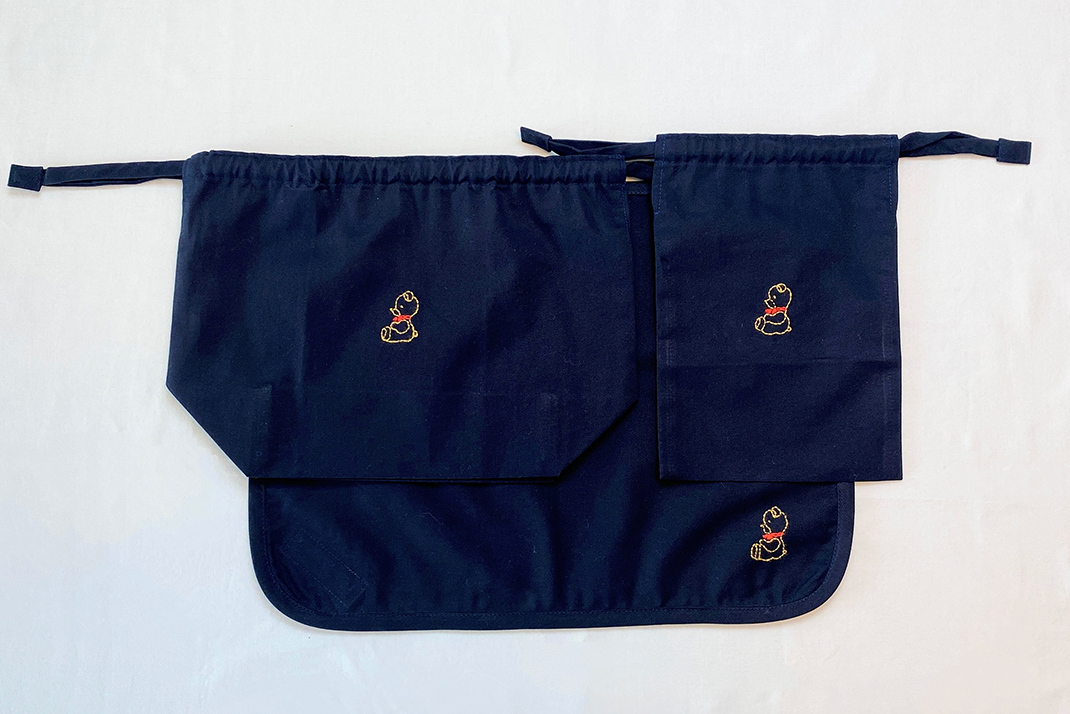 上品な色合いに愛らしいテディベアの刺繍を施した、入園入学3点セットです