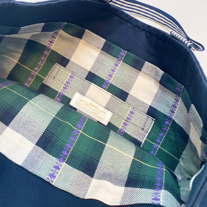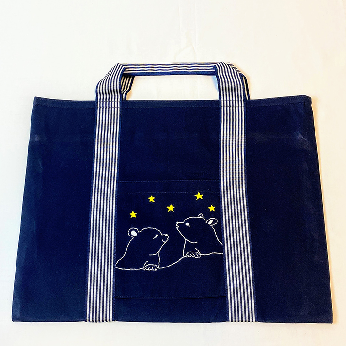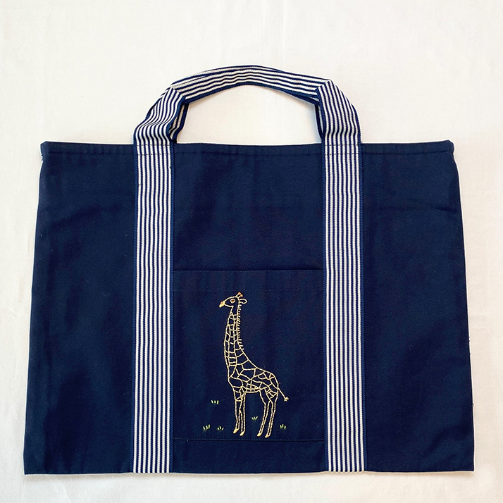 ストライプテープ仕様の持ち手と前面の刺繍がポイントのレッスンバッグです。